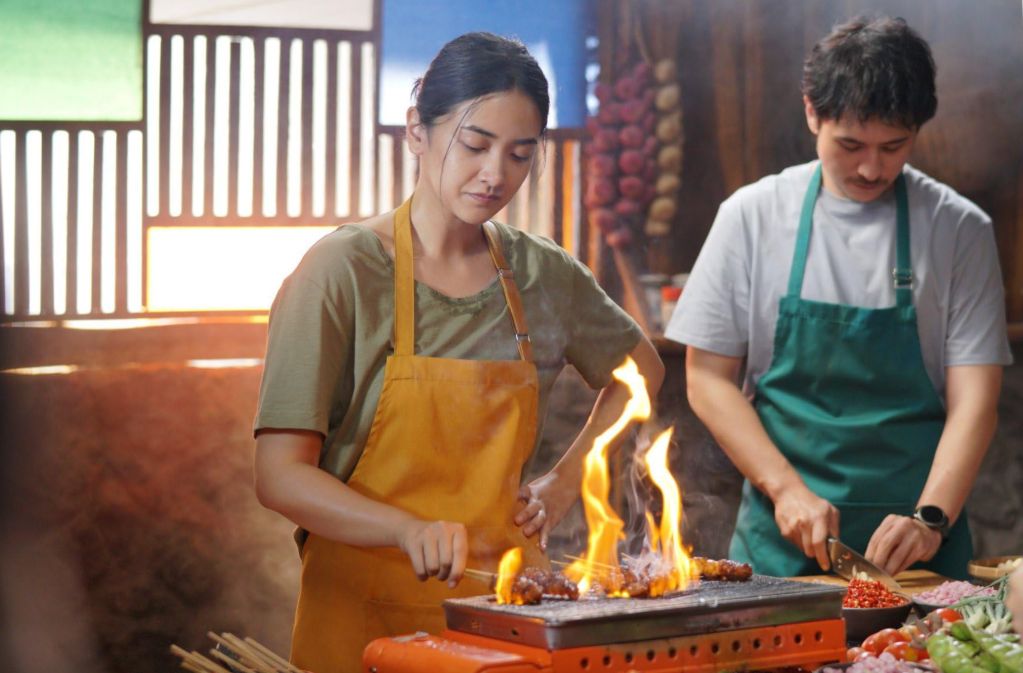 Harus diakui secara produksi dan sinematografi film ini sangat baik, mulai dari pemilihan lokasi, set production, pengambilan gambar, lighting dan sound effect semuanya tereksekusi dengan baik. Salah satu kekuatan utama film ini adalah tampilan visual, terutama dalam adegan memasak. Close-up bumbu-bumbu dan makanan tradisional terasa menggugah selera. Kita sebagai penonton dimanjakan oleh visual makanan dengan warna yang vivid sehingga membuat kita lapar sepanjang film dan interaksi di dapur dengan suara orang memotong, memasak dan menyiapkan makanan terdengar seperti ASMR di telinga. Adegan memasak dan kegiatan di dapur terlihat seperti iklan-iklan kecap atau penyedap rasa (in a good way) dimana detail dari rempah, bumbu dan sayurnya terlihat segar dan gurih, seakan kita bisa mencium aroma lezat makanannya dari depan layar kaca. Chemistry dua aktor utamanya Jerome Kurnia dan Nadya Arina sangat luar biasa, Jerome berhasil memerankan karakter Ressa yang emosional, arogan dan perfeksionis bertransformasi menjadi sosok yang bijaksana dan menerima dari mana dia berasal, saya bisa merasakan karakter Ressa benar-benar terluka karena trauma masa kecilnya dimana dia tersesat dan kehilangan jati dirinya sebagai chef maupun sebagai anak yang kehilangan koneksi dengan akar budayanya. Nadya Arina sebagai Tika menurut saya merupakan penyelamat film ini, aktingnya yang apik dan hangat membuat saya bertahan untuk meneruskan menonton film ini sampai selesai. Nadya berhasil memberikan roh pada karakter Tika, mengingatkan penonton akan teman masa kecil yang kita tinggal dan terlupakan, kita semua punya seseorang seperti Tika dalam kehidupan kita. Seorang sahabat lama yang kita berharap bisa bertemu lagi suatu saat nanti, mengobrol dan bercanda seakan kita tidak pernah berpisah selama bertahun-tahun. Momen atau scene yang paling membekas untuk saya terjadi di awal-awal film, bukan di bagian dimana Ressa memasak, drama percintaan atau bahkan perkelahiannya, Momen yang paling memorable adalah dimana Ressa memutuskan untuk pergi dari Jakarta dan pulang ke Magelang. Perjalanan pulang naik kereta api ke arah Yogyakarta yang syahdu diiringi lagu “Elora” Pure Saturday yang di cover oleh Rasukma, memandangi jendela kereta melewati sawah dan bukit yang hijau, transisi bangunan yang tidak ada gedung-gedung tinggi lagi, Naik bus menuju daerah Gunung Kidul dan berjalan melewati pasar menuju kebun sayur dengan pemandangan gunung di siang hari, berjalan perlahan menuju Warung Mbah Wongso.